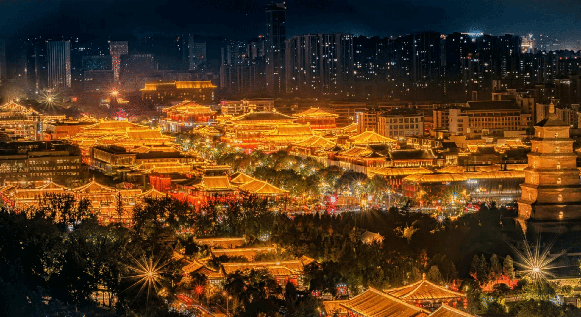 Walk along the Tang Dynasty Ever-bright City,and you'll understand the cultural romance of Xi'an. The traditional performances and glittering lights wash away all worries.
