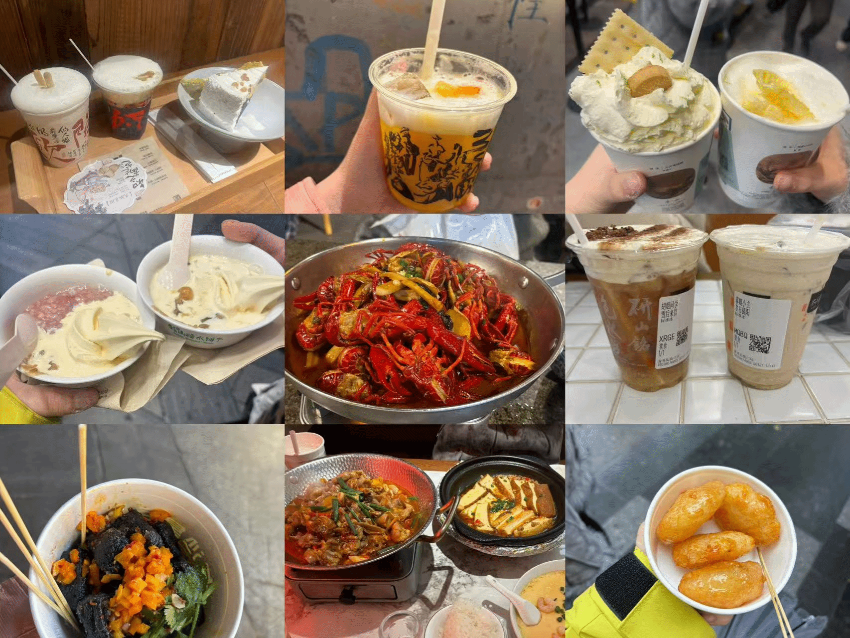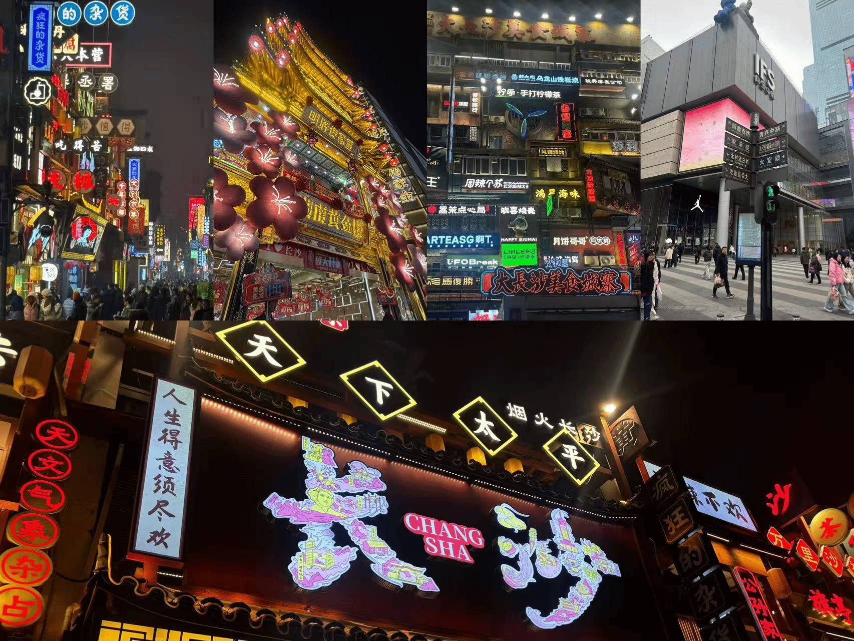 In the evening, Wuyi Square was bustling with people, and I tasted local snacks like stinky tofu and the famous Orchid Latte from Cha Yan Yue Se, feeling the lively life of Changsha.