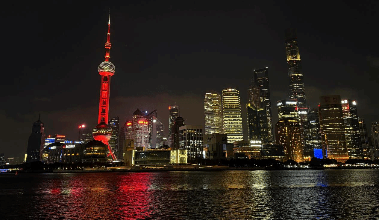 The Huangpu River glistens with lights. Ferries move quietly across the water, and the Bund’s colorful glow turns the river blue and gold—it’s a beautiful, lively light show.