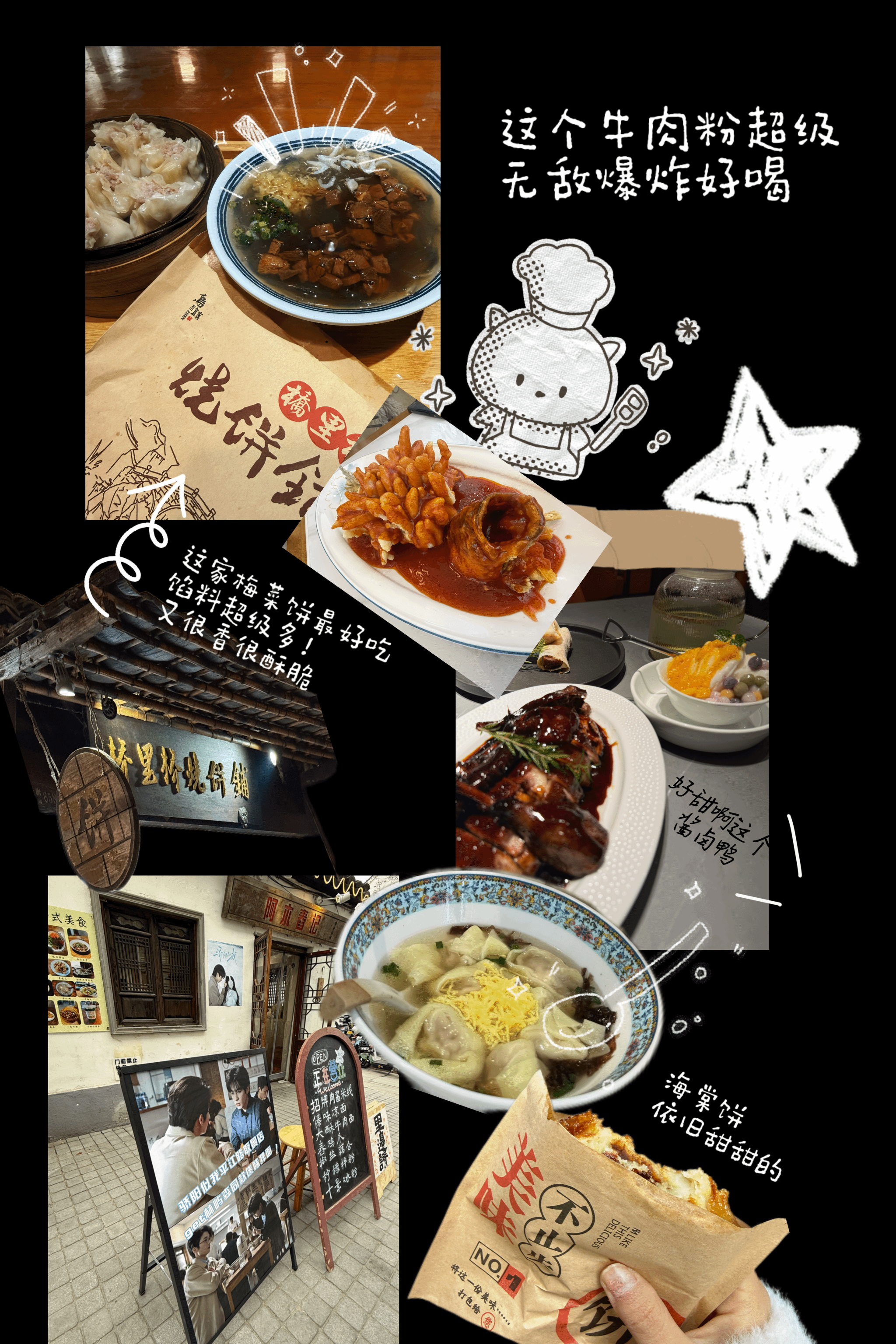 Jiangnan food is famous for its delicacy and fresh taste. Braised Duck is shiny red, tender and savory-sweet. Beef Noodle Soup has a rich broth and tender meat, warming you up. Crabapple Cakes are flower-shaped, with a crispy crust and sweet filling. Squirrel-Shaped Mandarin Fish is crispy outside and tender inside, with a sweet and sour flavor. Crab Meat Wontons have thin skins and big fillings, full of fresh crab taste.Preserved Vegetable and Pork Pancake is crispy and thin. It tastes salty and savory, and gets more delicious as you chew. One bite makes you happy.