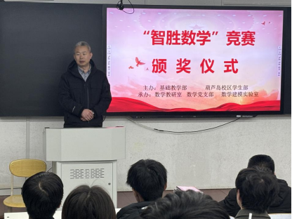 为表彰在“智胜数学”系列竞赛中斩获佳绩的学子,进一步营造乐学善思的数学学习氛围,3月14日,辽宁工程技术大学葫芦岛校区“智胜数学”竞赛颁奖仪式在尔雅楼103顺利举行。基础教学部主任万君教授、葫芦岛校区学生部主任张志勇、数学教研室主任刘涛副教授出席仪式,数学党支部书记、数学建模实验室主任王伟副教授主持仪式,全体获奖学生参与本次颁奖仪式。