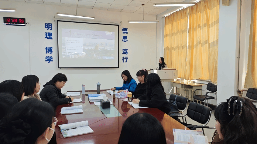 3月16日中午,大学英语一组在会议室举行了本学期的第一次教学研讨会。本次会议聚焦于《新视野大学英语(第四版)读写教程(思政教学版)》第一单元的教学设计,由刘良老师作主题分享,展示了她如何将教材内容、思政目标与智能化工具有机结合,设计出一套完整的课堂教学方案。