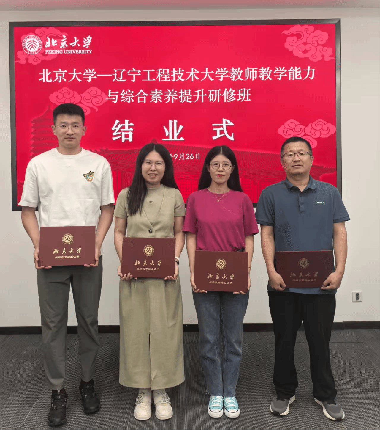 2025年9月,辽宁工程技术大学基础教学部教师:丛阳、宛如、王磊、王一迪赴北京大学,参加了为期五天的高校教师教学能力提升高级研修班。本次研修以“AI赋能教育创新与教学设计优化”为主题,通过专家报告、案例研讨、技术实训等多种形式,共同探索数智时代高等教育的新路径与新方法。