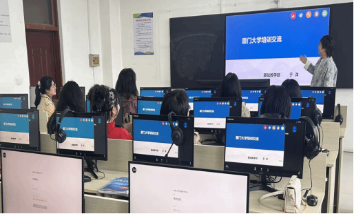 会上,于洋老师结合厦门大学研修期间的所学所思,系统梳理了新时代高校外语教学的创新趋势。在AI智慧课程板块,她介绍了人工智能技术在课程设计、学情分析、个性化教学中的应用案例,提出借助智慧教学平台优化课堂互动、提升教学效率的实践思路;在教学改革创新部分,她分享了研修班中关于项目式学习、跨学科融合教学的先进经验,结合外语教学实际提出了可落地的课堂改革方案。